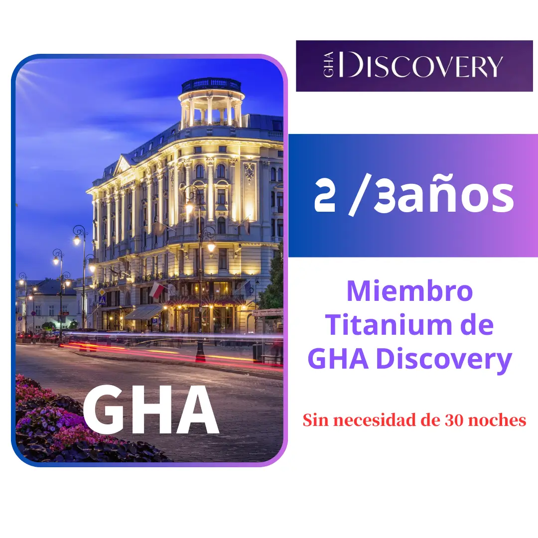 ¡Accede al status Titanium de GHA Discovery sin necesidad de cumplir noches de alojamiento! Disfruta de una membresía GHA Discovery de élite y aprovecha beneficios premium en más de 800 hoteles de lujo a nivel mundial.
