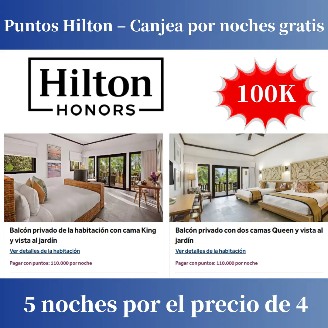 ¡100.000 Puntos Hilton en Venta! Canjea por noches gratis, 5 noches pagando solo 4