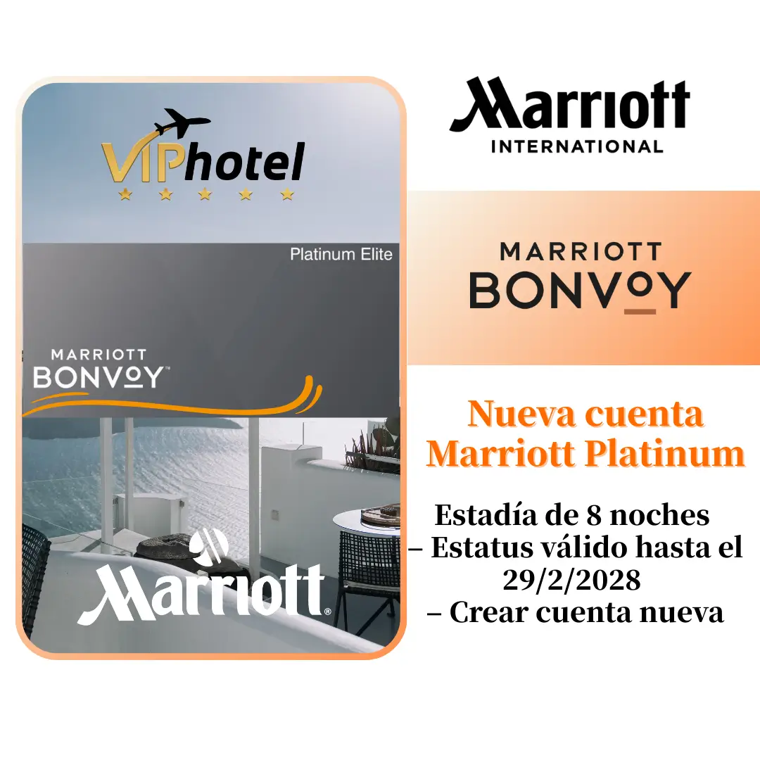 Nueva cuenta Marriott Platinum por 120 días, hospédate 8 noches y extiende tu estatus hasta el 29/2/2028.